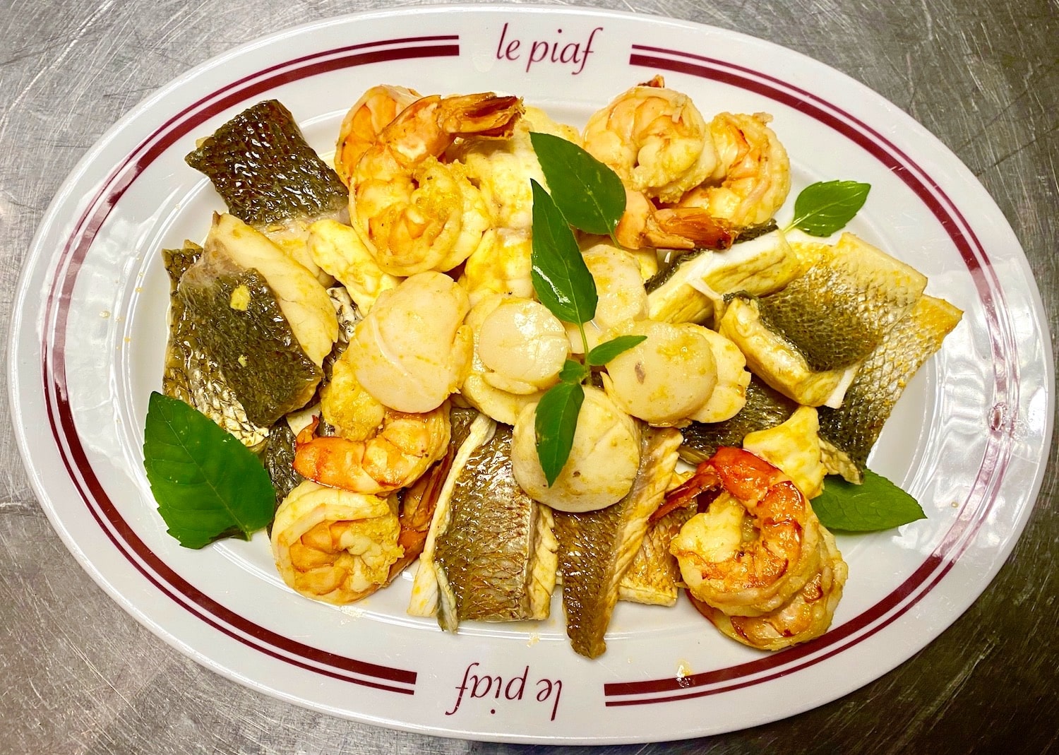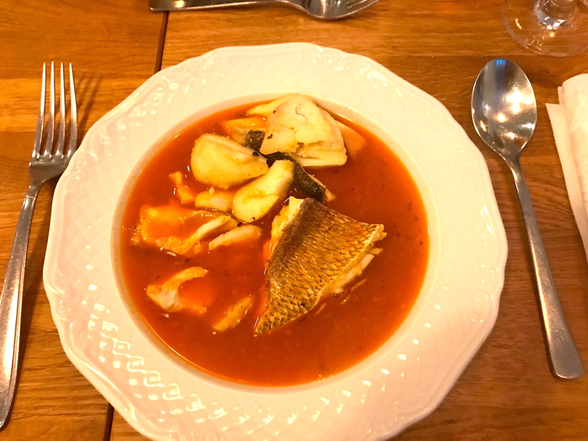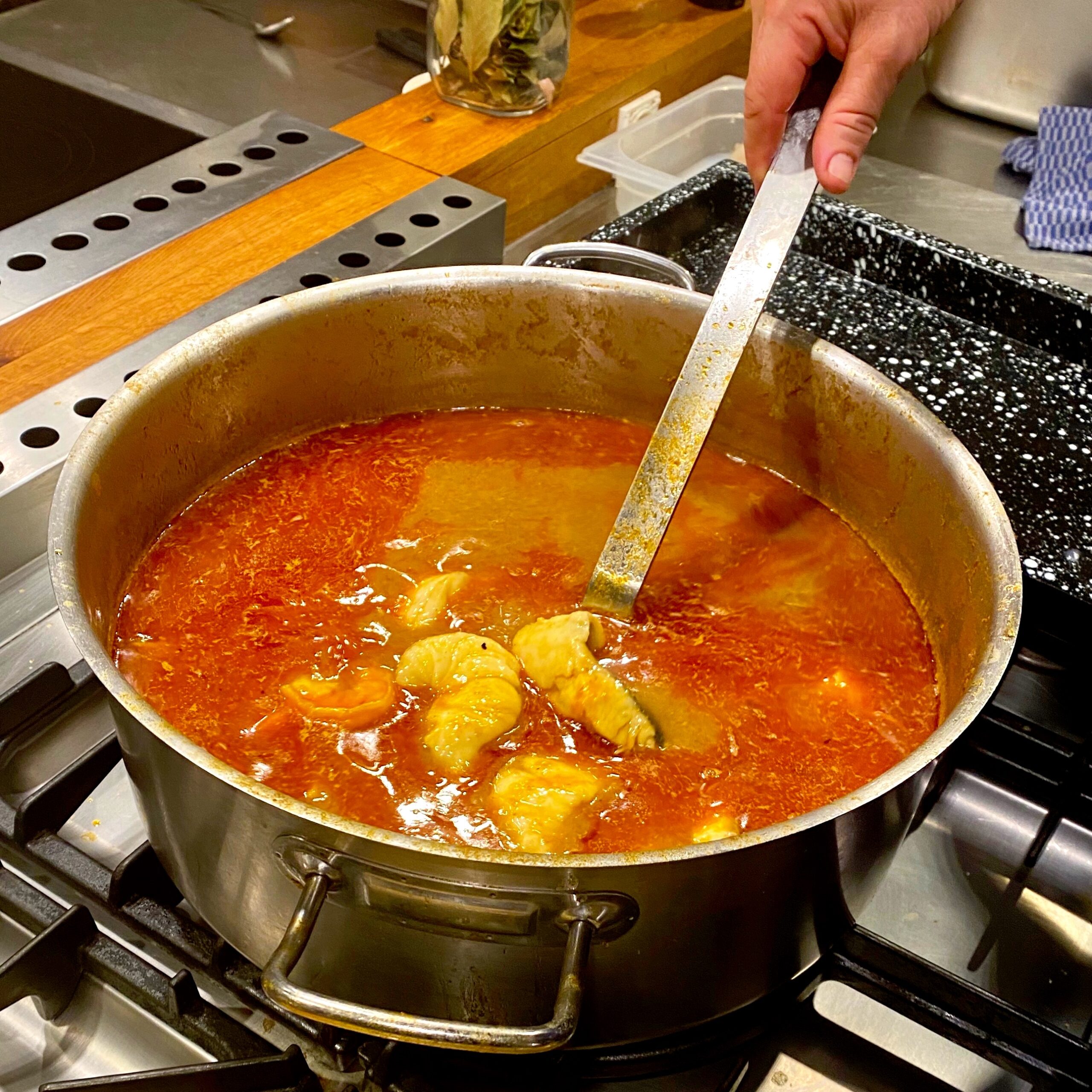 Bouillabaisse mit Scampi, Jakobsmuschel, Adlerfisch, Dorade, Seefeufel (Fisch je nach Marktlage)