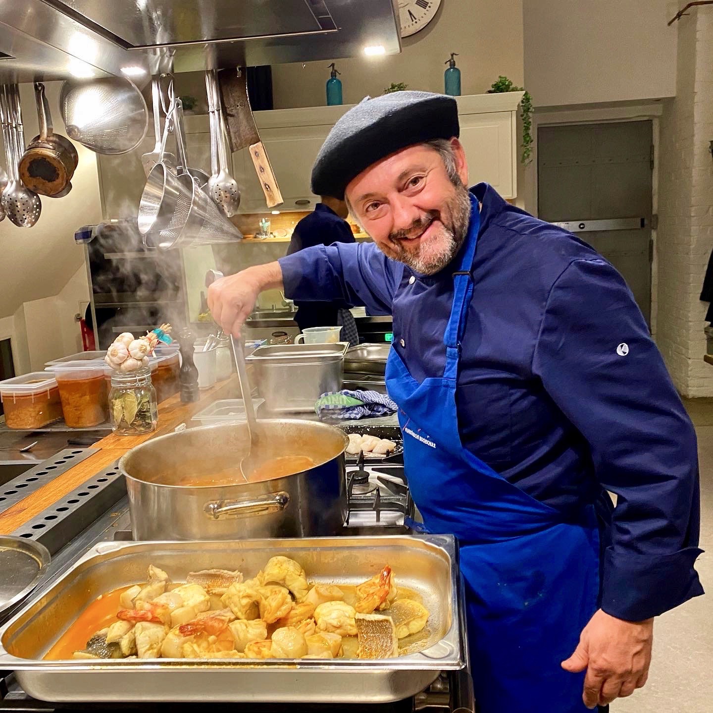 Claude erläutert zwischendurch noch einmal, wie man in Frankreich die Bouillabaisse genießt und wie er sie zubereitet hat. Außerdem erklärt er die Weinbegleitung und ist natürlich für Fragen und Gespräche offen. Ihr erlebt einen familiären Menüabend im Kreise anderer Genussmenschen, mit denen ihr bei gutem Essen und Weinen ganz einfach ins Gespräch kommst.