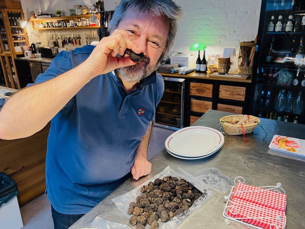 Wir öffnen das Kochstudio ab 19.00 Uhr. Du hast zunächst Gelegenheit, in Ruhe den Apéritif zu genießen. Bei diesem kulinarischen Event in unserem Kochstudio brauchst du nicht selbst kochen, sondern kannst dich von uns mit einem aromatischen Trüffel-Menü verwöhnen lassen. Du sitzt zusammen mit anderen Gästen an einer Table d’hôte (Gästetafel) und siehst dabei zu, wie Claude an der Kochinsel das Menü fertig stellt und anrichtet. Wenn du für eine Kleingruppe buchst, sitzt ihr natürlich gemeinsam an einem Tisch (max. 8 Personen).
