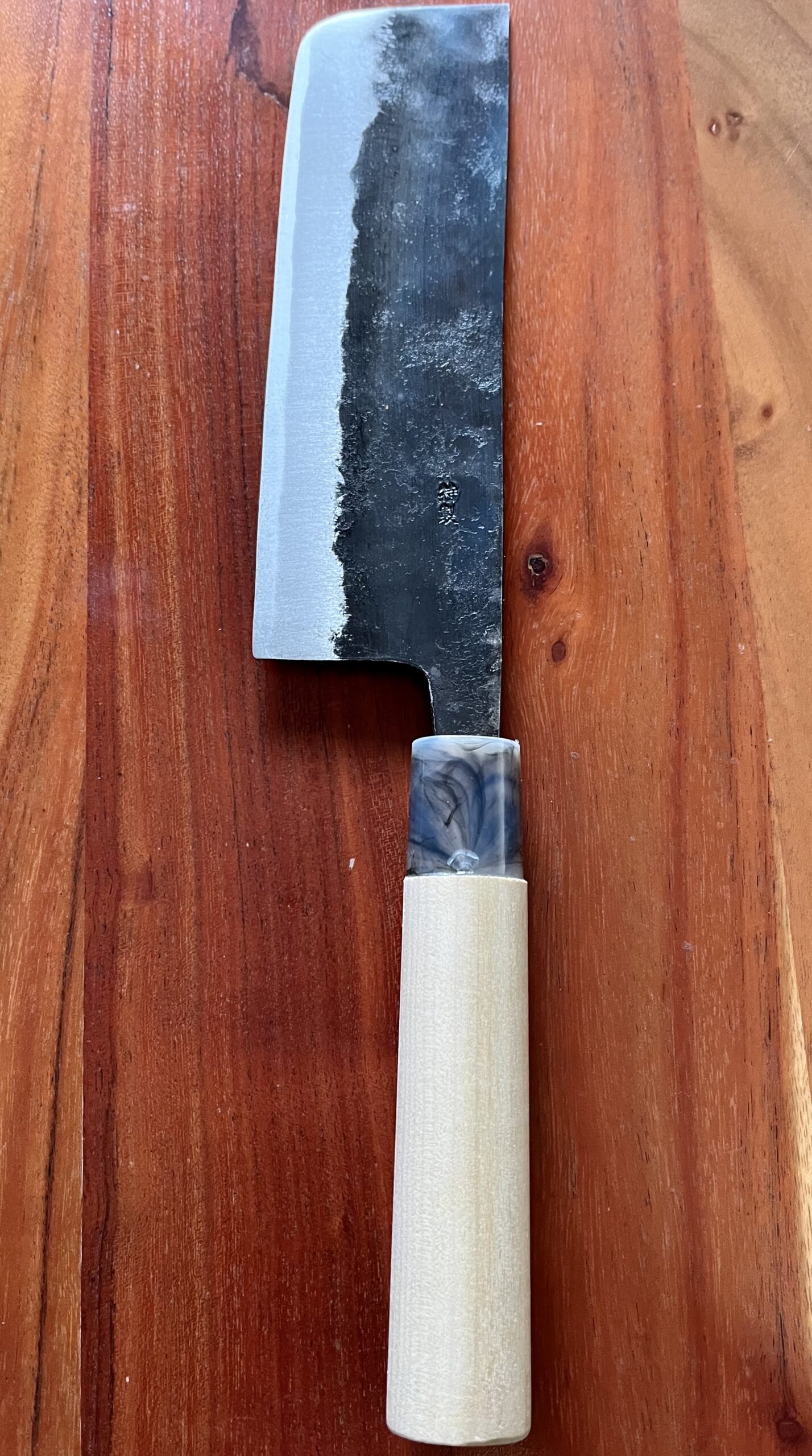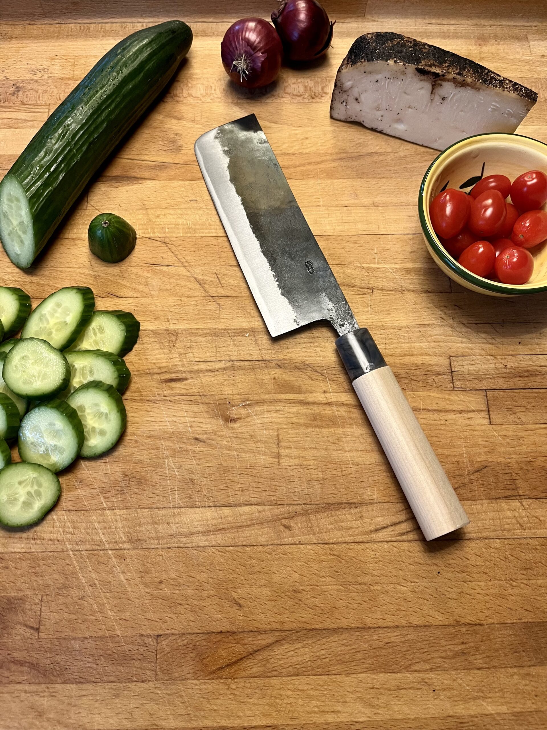 Das Nakiri ist beidseitig geschliffen und dünn ausgearbeitet, um Gemüse aller Art zu hacken und zu schneiden. Zwar zerteilt die 16,5cm lange Klinge Gemüse wunderbar, doch zum Zerteilen von Knochen ist es nicht zu Verwenden.